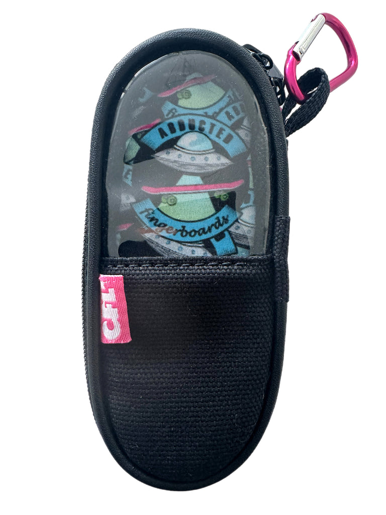 These exclusive Abducted collab fingerboard bags are designed to take your fingerboard and tool or small parts with you safely on the road. Not only are these high quality, with meticulous attention to detail using the best quality hardware and materials, but the Abducted printed satin lining takes it to another level.