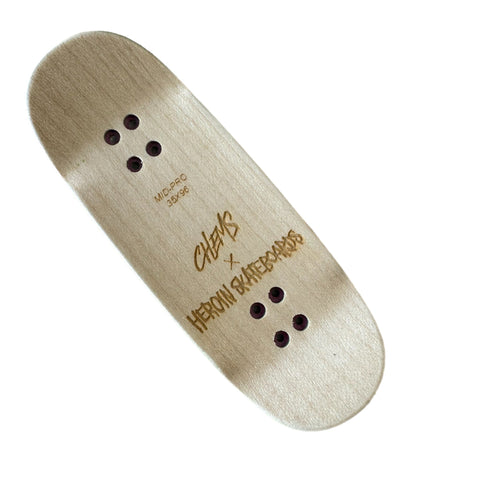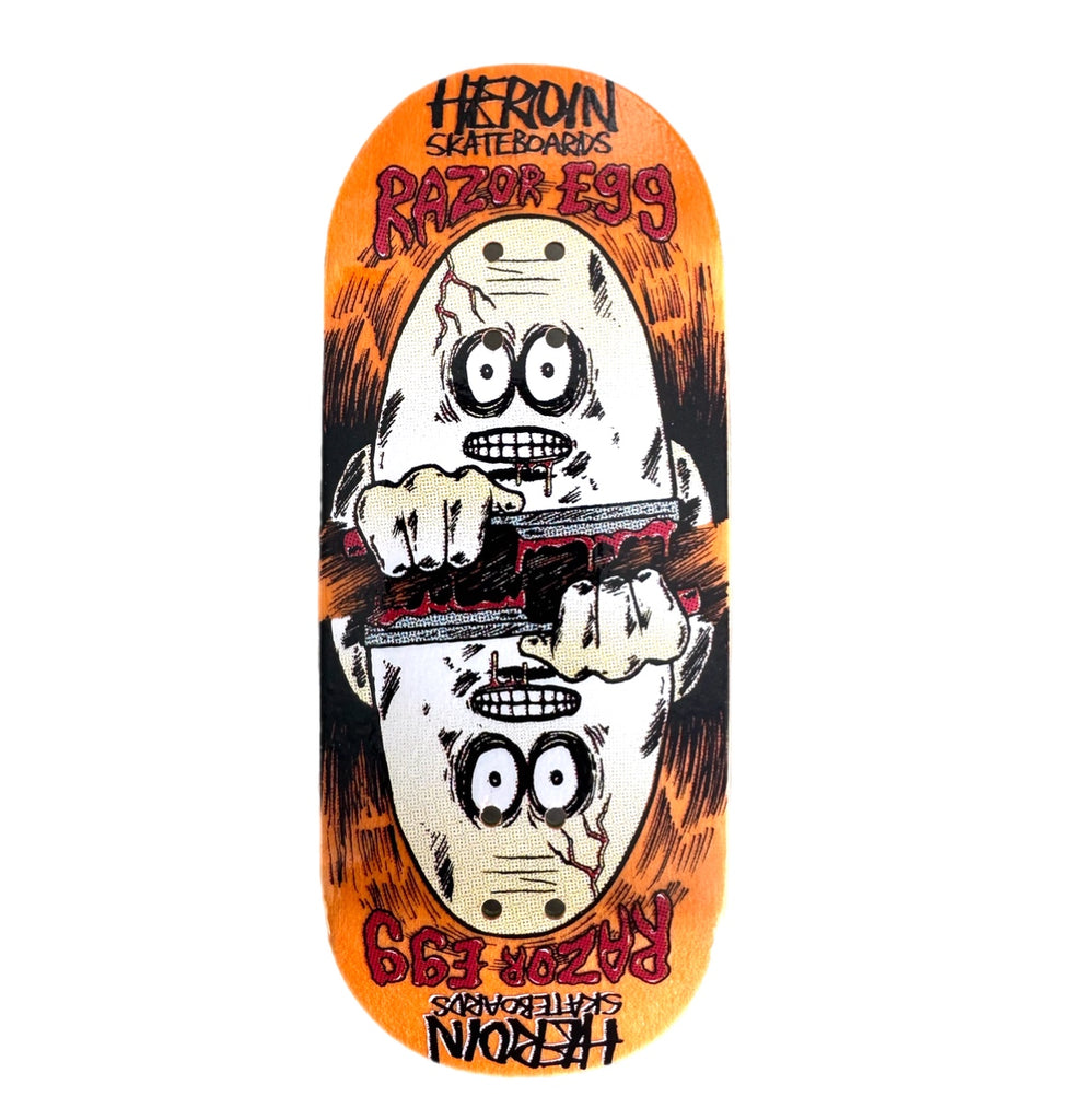 Limited edition and officially licensed collaboration between Chems and Heroin Skateboards! Recreating your favourite skateboard decks into highly functional fingerboards with authentic screen printed graphics. Available 37mm x 96mm Mid pro,Eggy (shape See Shape guide) Designed to fit 36mm trucks Very closely replicating the skateboard version High quality 5 ply maple deck. Includes 2 sheets of Black Cat Foam Tape and awesome stickers.