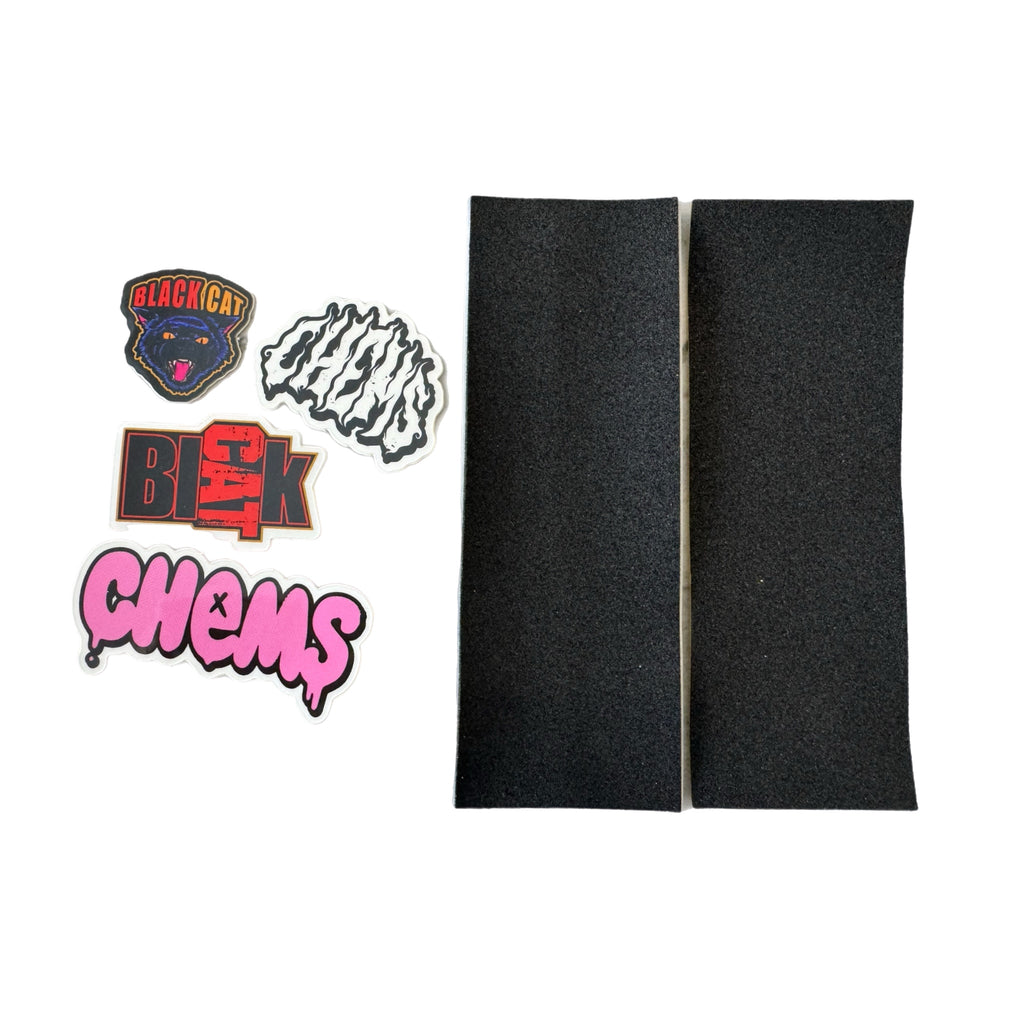 Includes 2 sheets of Black Cat Foam Tape and awesome stickers.