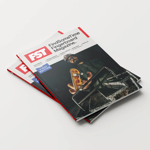 The first issue of FindSomeTime Fingerboard Magazine. Featuring Alex Rogan, Joaquim Mendez of December Fingerboards, Simon Laroche of Blink FB, Raviollie and the Crete Doctor, Jason Maki.