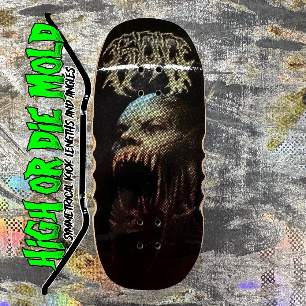 High quality hand made 5 ply maple fingerboard decks with real wear skate graphics, and an epic coloured and stamped top ply.